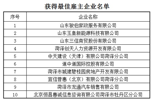 由菏澤市人力資源和社會保障局、菏澤市工商聯(lián)、菏澤市總工會、共青團(tuán)菏澤市委、菏澤市婦聯(lián)、牡丹晚報、菏澤市人力資源協(xié)會共同主辦的菏澤市首屆“創(chuàng)天杯”最佳雇主評選活動,經(jīng)過近兩個多月的層層角逐,結(jié)果于近日揭曉公布。