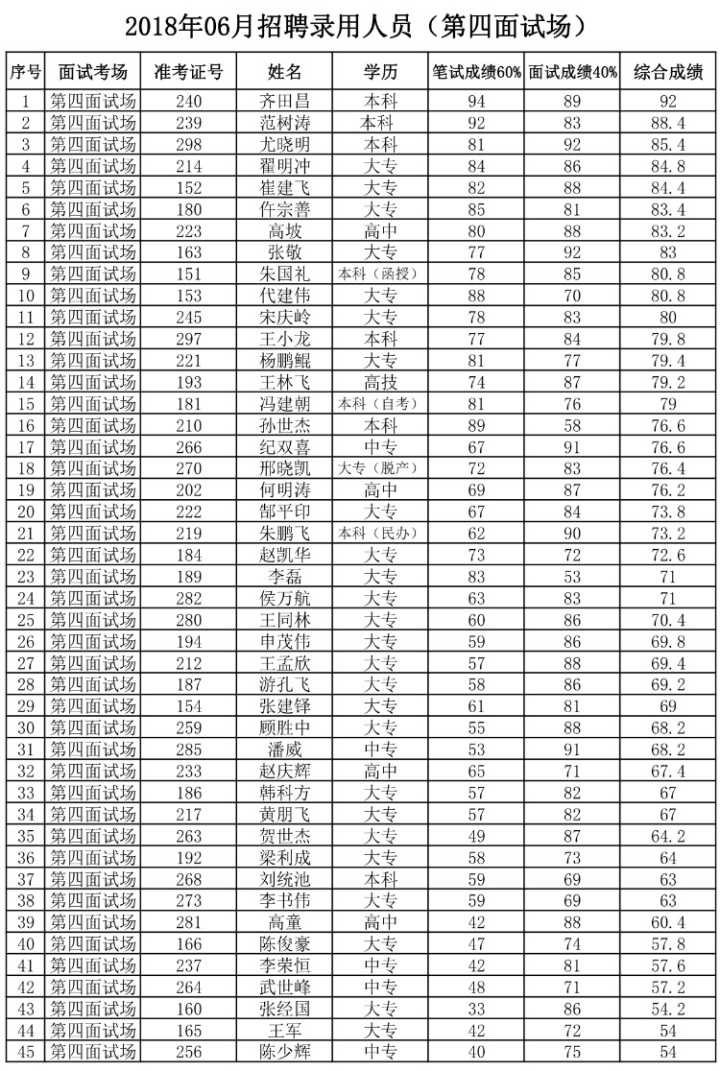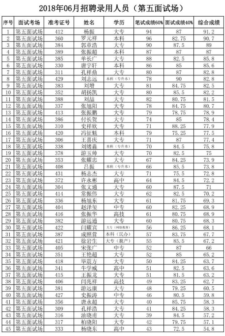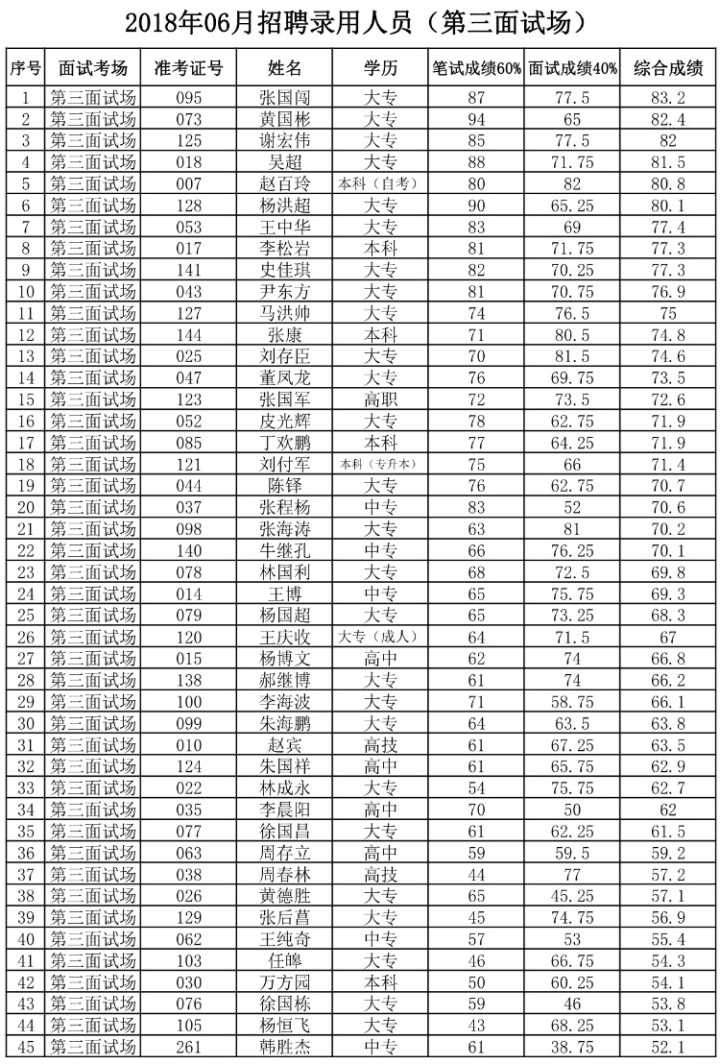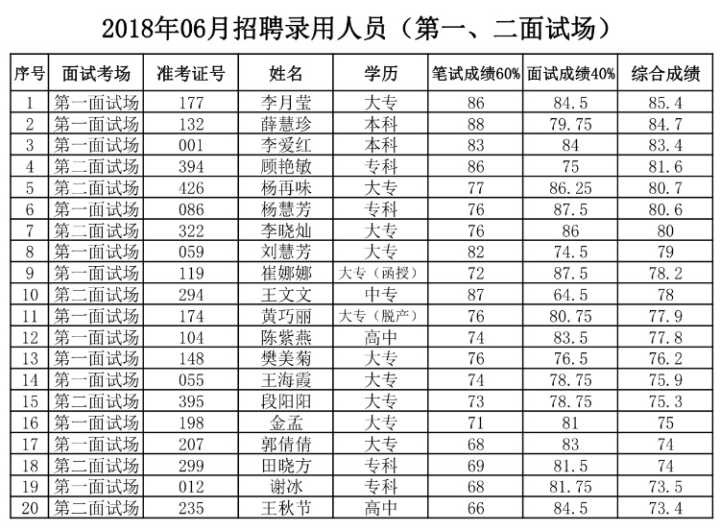 根據(jù)公司用人需求,按照應(yīng)聘人員綜合成績(jī)(筆試成績(jī)*60%+面試成績(jī)*40%)排名,公司決定錄用以下人員,請(qǐng)大家查看并注意以下報(bào)到事項(xiàng):
