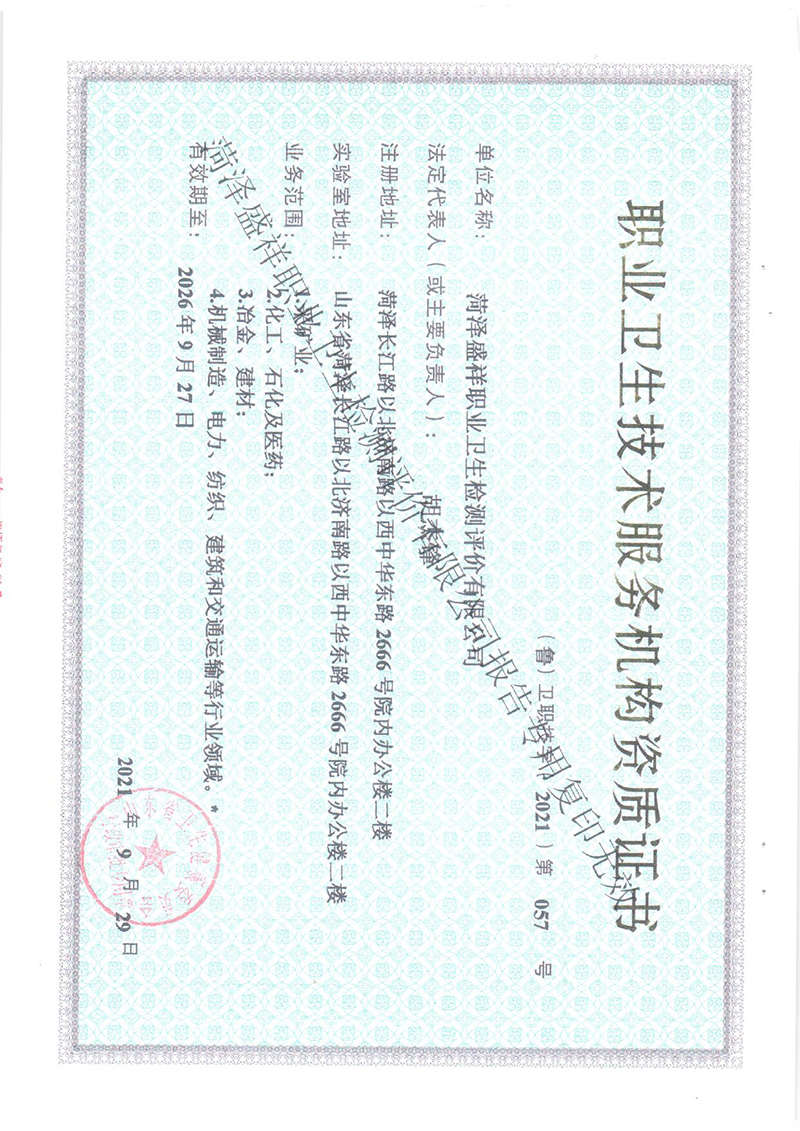 職業(yè)衛(wèi)生檢測報(bào)告