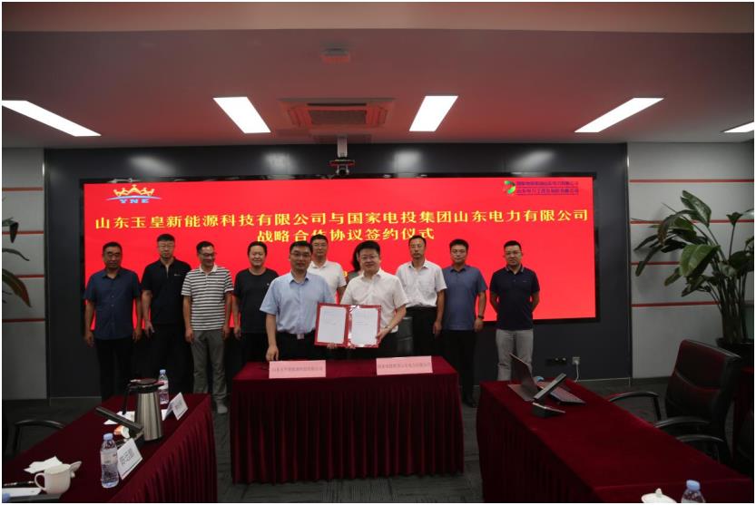 8月18日上午,玉皇新能源與國家電投集團山東電力有限公司(簡稱:國電投山東分公司)在濟南簽署戰(zhàn)略合作協(xié)議。菏澤市魯西新區(qū)新能源新材料園區(qū)管委會主任李鑫,國電投山東分公司總經(jīng)理助理,發(fā)展投資部總經(jīng)理、黨支部書記翟彬,專家委委員、資深專家姜軍海,發(fā)展投資部副總經(jīng)理高潔,發(fā)展投資部主辦高霄航,以及玉皇化工集團總裁、玉皇新能源董事長王瑛,玉皇新能源總經(jīng)理徐印東、副總經(jīng)理董鑫等見證簽約。