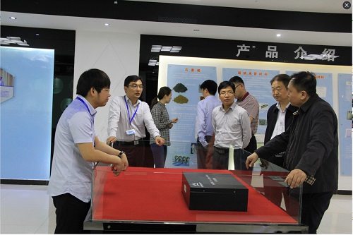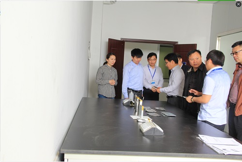 牟毅一行在我公司董事長王瑛、總經理趙成龍的陪同下先后參觀了研發樓實驗室、電芯車間以及我公司研發產品展廳,總經理趙成龍關于公司目前的生產運營情況作了簡要匯報。