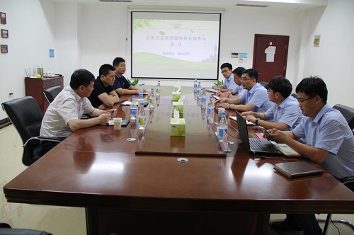 玉皇新能源董事長王瑛、總經理趙成龍博士、銷售總監楊坤鵬、總經理助理王念貴,以及寶沃動力有限公司總經理助理董鑫博士陪同參觀。一行人先后參觀了玉皇集團展廳、技術研發中心及產業園,并于會議室協商洽談。