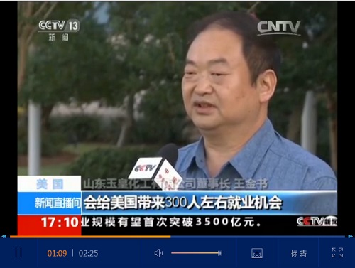 央視【新聞直播間】報道山東玉皇化工(集團)有限公司在美投資建甲醇廠
